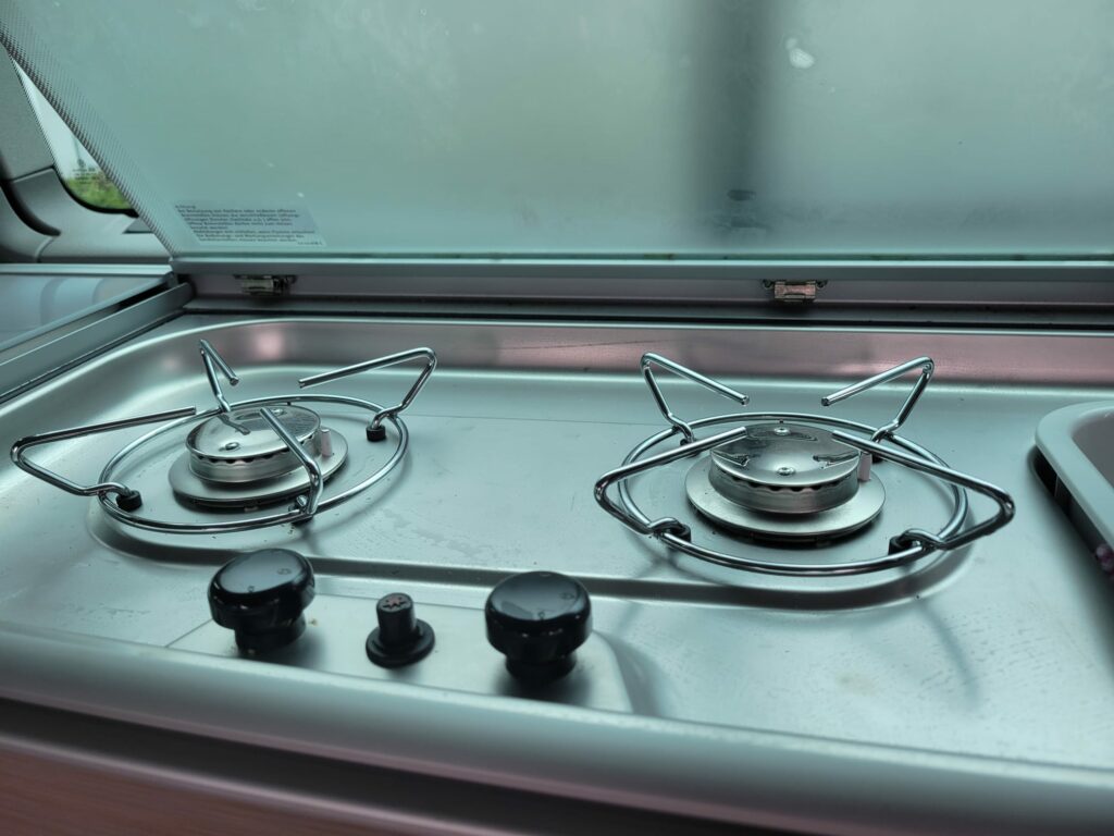 frigo/gaz/évier/2 tables/2 chaises, soit l’équipement d’origine